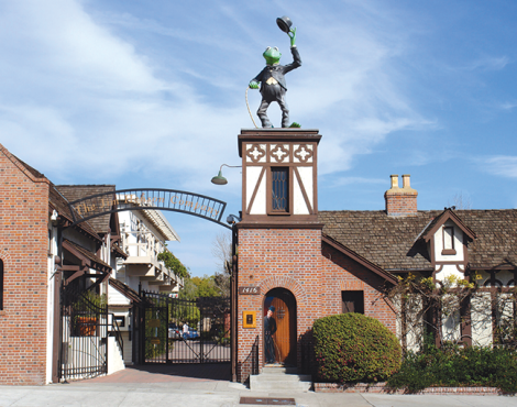 A statue on La Brea Avenue paying tribute to two icons of the silver screen – one known for his top hat and cane and the other known for his small green...