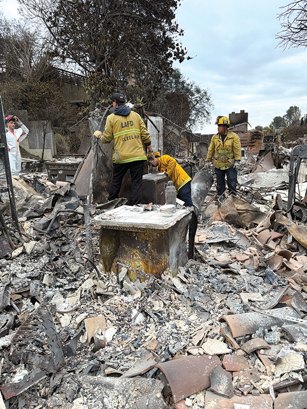 Chris Vilaubi and firefighters from LAFD Fire Station 15 helped Leo Rochman recover family heirlooms from his property in Pacific Palisades.